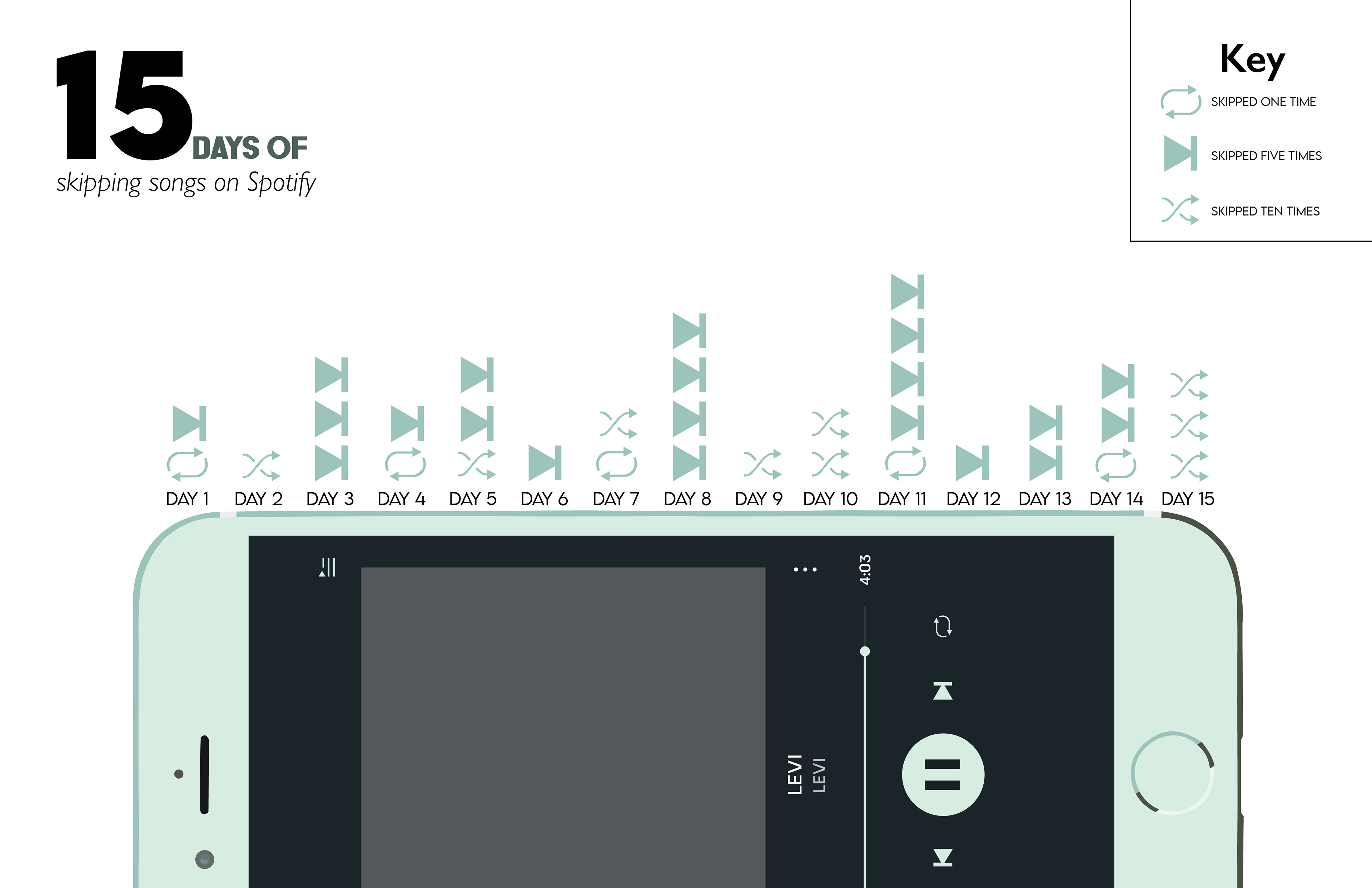 This assignment was for my Graphic Design II class. We were tasked with recording data for 15 days, and then we had to create posters that visualized that data. And then with those poster, we had to animate them using After Effects.